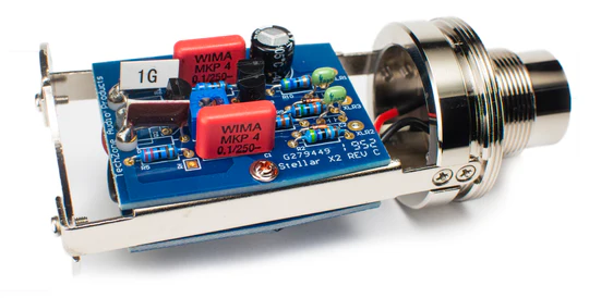 Our custom transformerless JFET circuit provides excellent performance with low noise (< 13dBa) and low distortion. High-frequency attenuation is added to remove any harshness commonly associated with the K67 style capsule. Our circuit is made using German WIMA film capacitors and components with tolerances as high as 1%. In addition, the PCB uses gold traces for better conductivity.