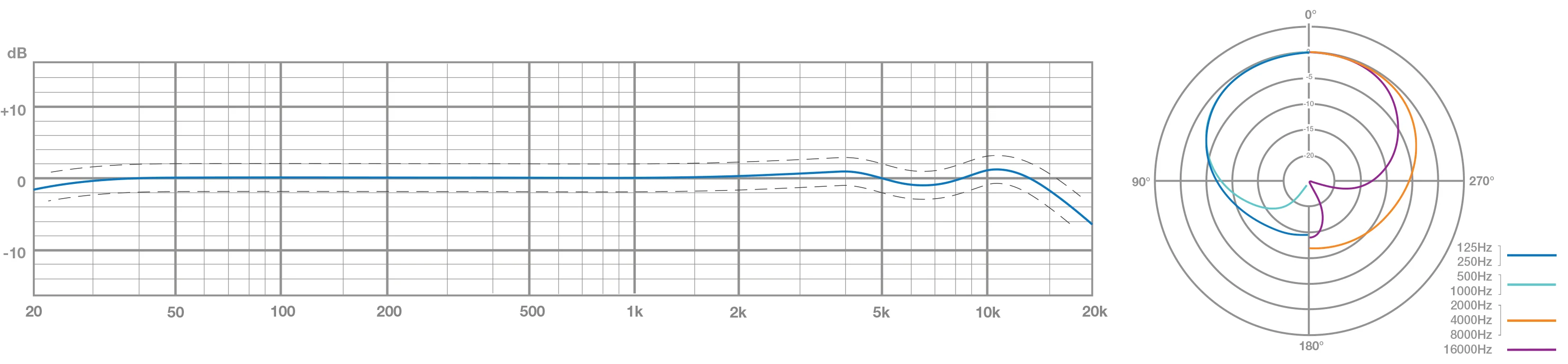 The graph below shows the frequency chart and the polar pattern of the Stellar X2 microphone. Every microphone will be within 1.5dB of the frequency response as part of our strict quality control process.